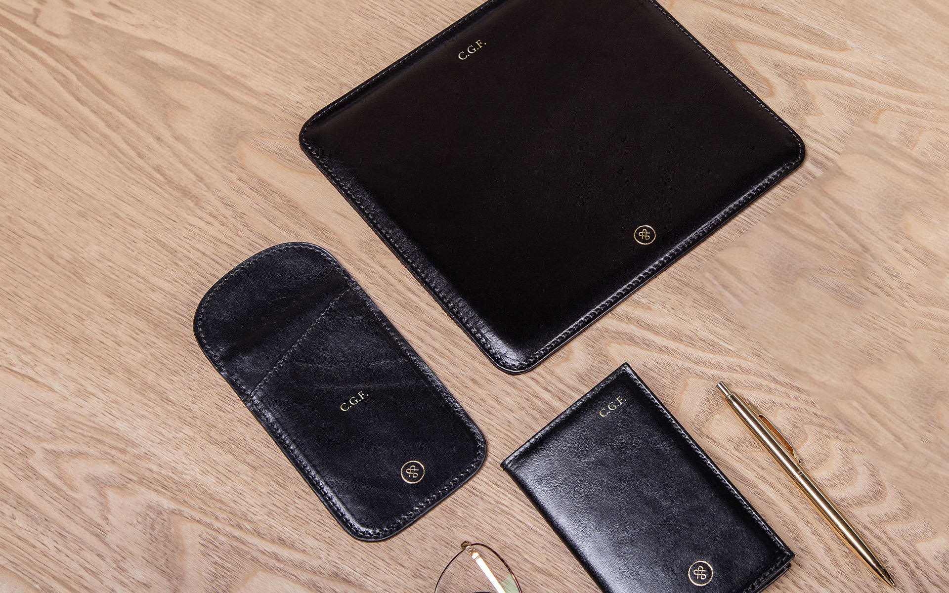 Choose our embossing service and have your luxury leather gifts heat stamped with their initials in gold, silver, copper or blind.