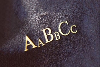 Our embossers based at Maxwell Scott HQ in England use a traditional hot foil method to emboss your chosen letters onto the leather surface of our bags and accessories.